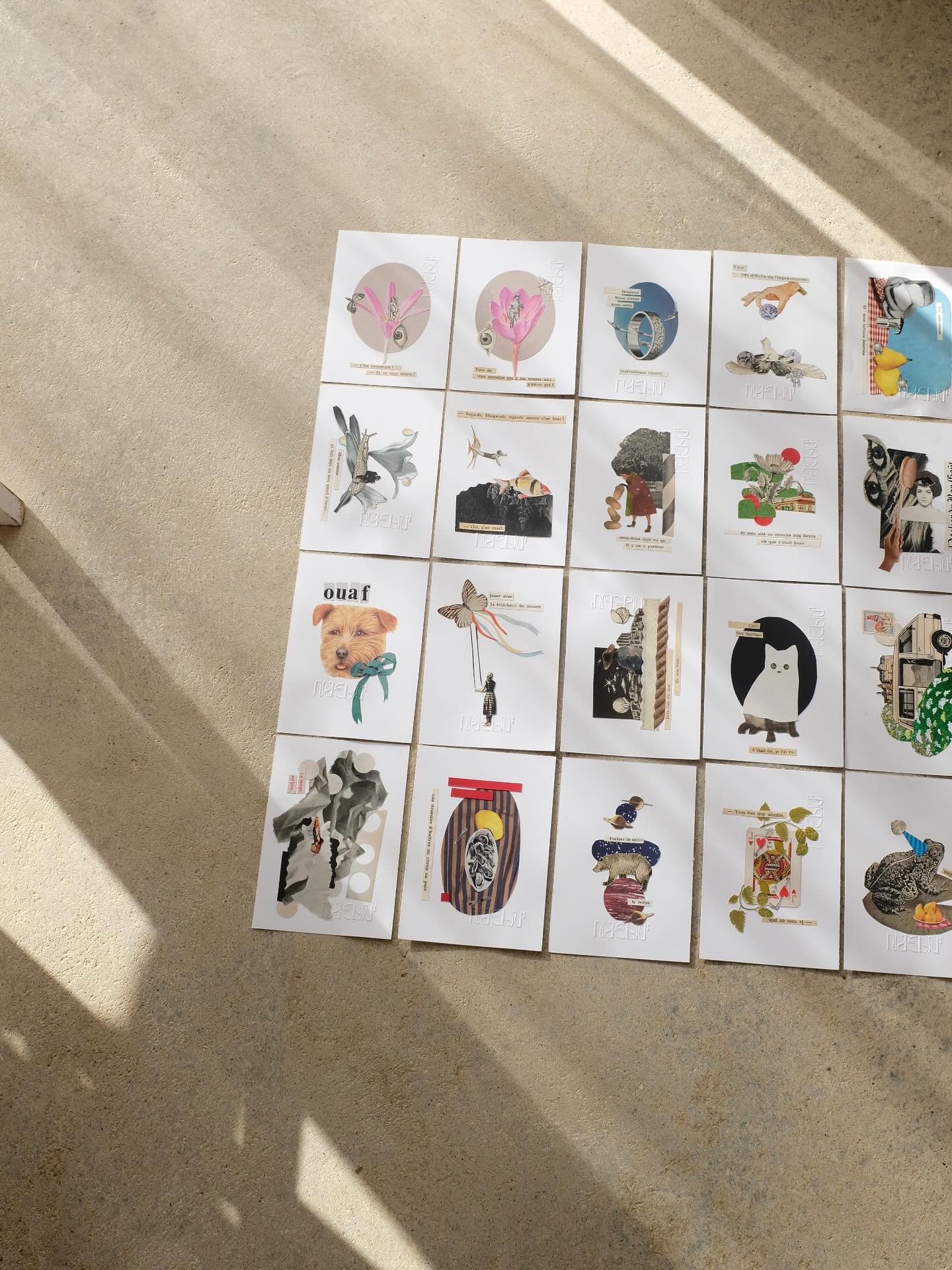 + J’imprime des cartes postales et des affiches de mes collages et photographies